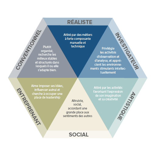 L'acronyme RIASEC sert à rappeler les types :